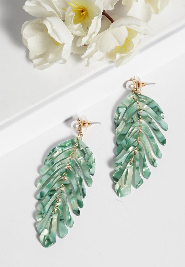 Korvakoruissa on ainutlaatuinen ja monimutkainen muotoilu, joka muistuttaa siroa lehden muotoa. Näiden korvakorujen pitkä pituus lisää draamaa ja hienostuneisuutta lookiisi. Jos käytät asua, jossa on kukkaprinttejä, vihreät lehtikorvakorut voivat korostaa...