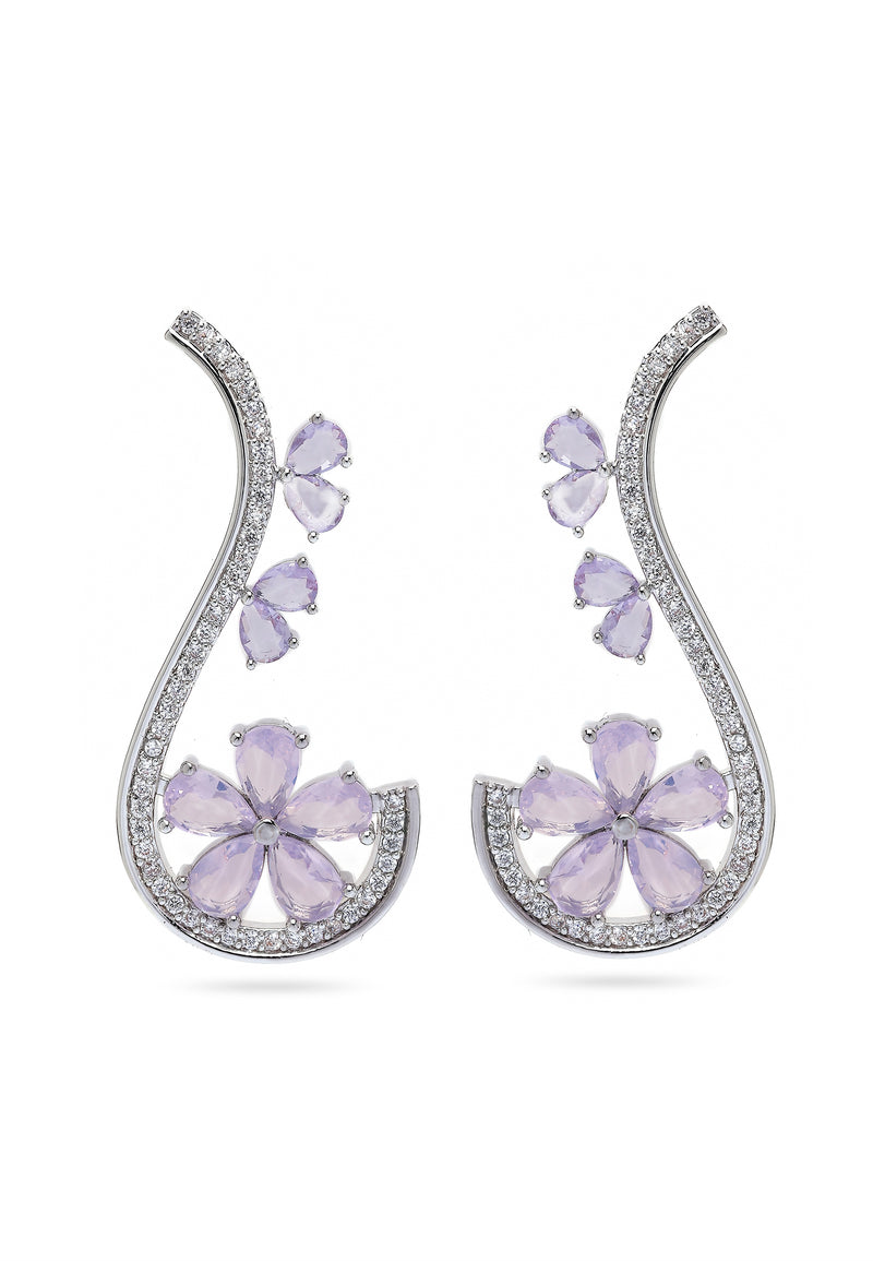 Pehmeät vaaleanpunaiset kukat, jotka on koristeltu loistavalla kimalluksen esityksellä, virtaavat elegantisti muodostaen silmiinpistävän ja hienostuneen ilmeen. Roikkuva pisara tuo mukanaan liikkeen ja leikkisyyden tunteen, mikä tekee näistä korviksista ihanteellisen osan,...