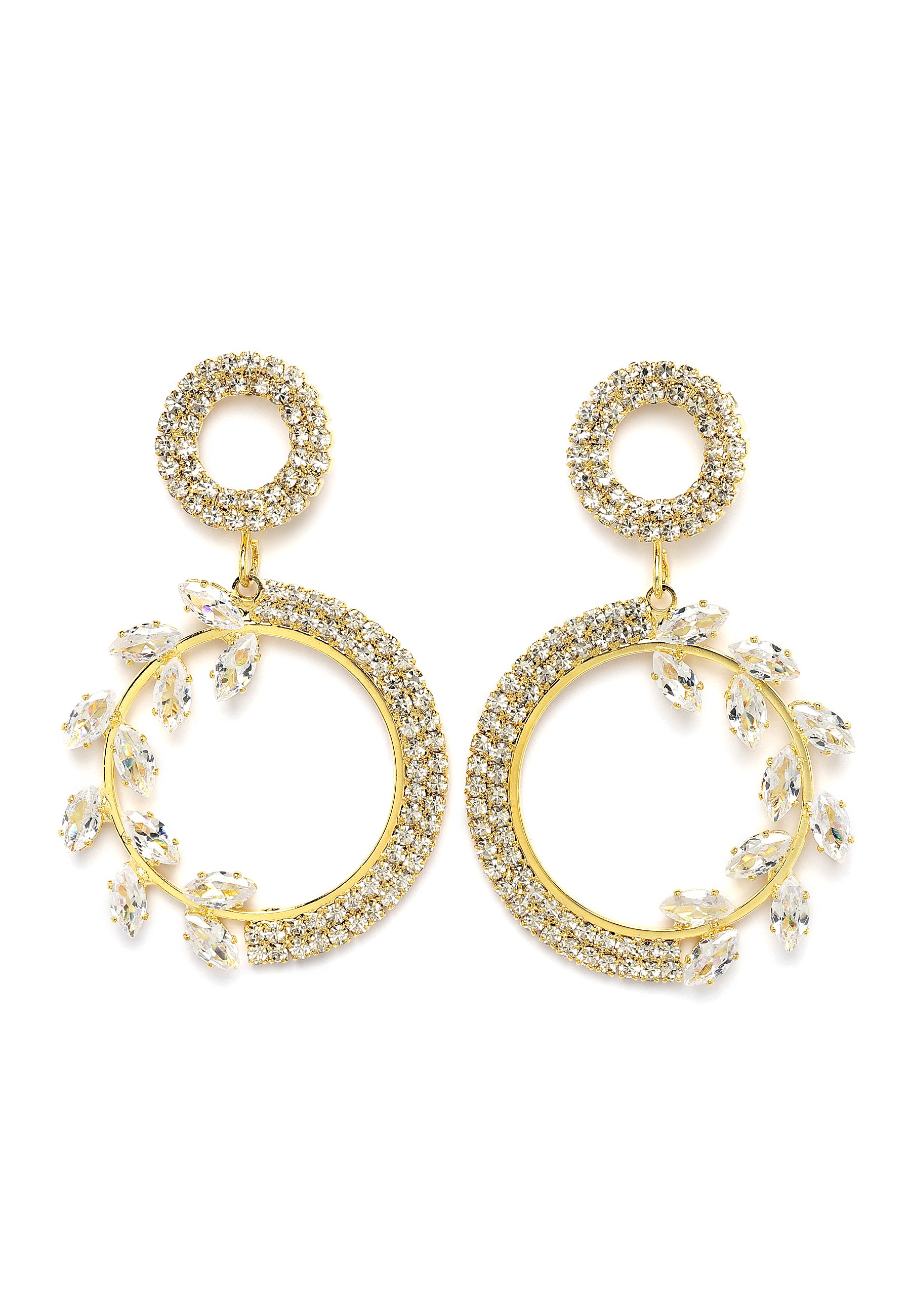 Das einzigartige Doppelkreisdesign, besetzt mit einem schimmernden Wasserfall aus funkelnden Steinen, schafft einen fesselnden und eleganten Look. Sie sind ein Statement-Stück, das Raffinesse und Charme ausstrahlt, perfekt um jedem Outfit einen Hauch von Glamour zu verleihen.