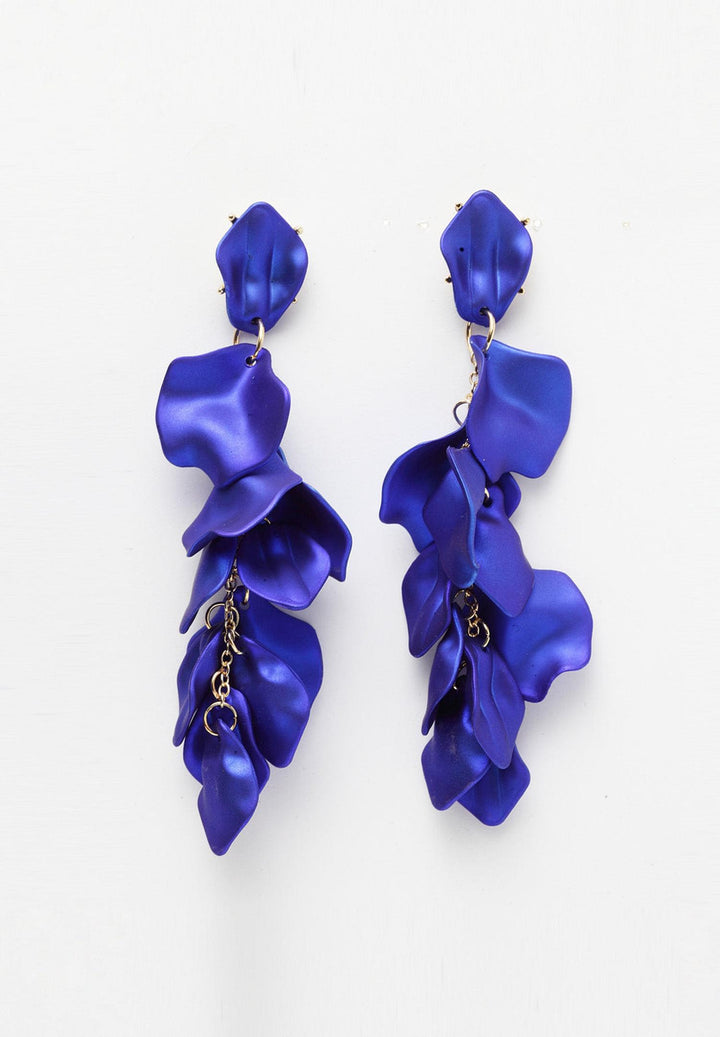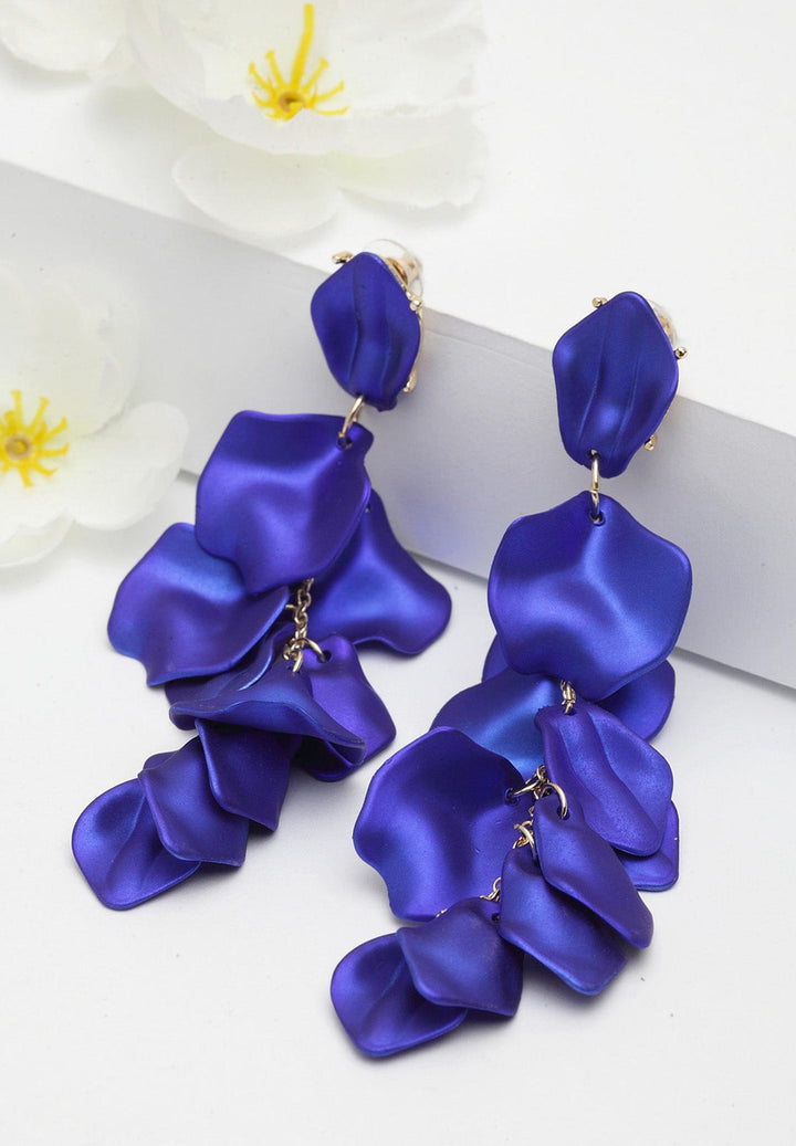 Setzen Sie ein glamouröses und luxuriöses Statement mit diesen luxuriösen langen Ohrringen in Blütenblattform. Diese exquisiten Ohrringe bestechen durch ihr längliches, blütenblattförmiges Design und sind ein auffälliges und elegantes Accessoire für besondere Anlässe oder glamouröse Events. Sie können sie mit königsblauen und weißen Outfits kombinieren.