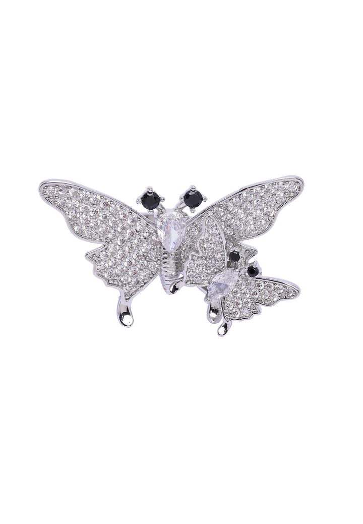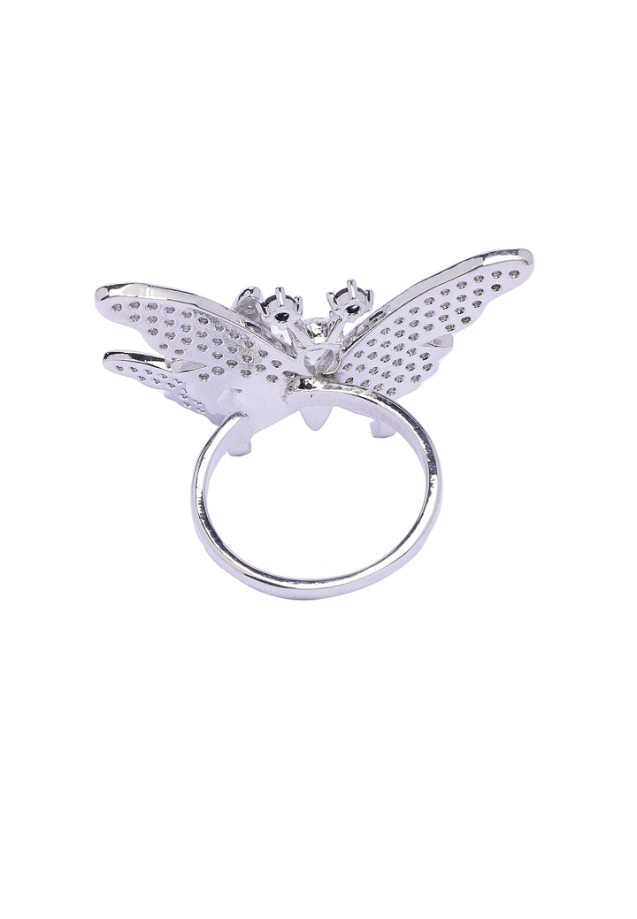 A whimsical work of art! A delicate butterfly, encrusted with sparkling stones, seems to take flight on your finger. It's a captivating masterpiece, a unique and enchanting accessory that will bring a smile to your face. This ring is a statement piece that exudes elegance and playfulness, perfect for adding a touch of whimsy and magic to any outfit.