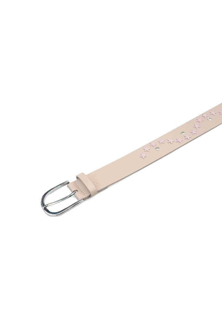 This Belt with Star Motif is a fresh and stylish accessory that adds a playful yet chic touch to any outfit. Featuring a crisp white strap adorned with a subtle star motif, this belt combines a minimalist design with a fun, celestial element. The clean beige color makes it versatile enough to pair with various outfits, while the star details provide a unique twist, adding personality and charm. The white color complements bright, summery tones, while the star motif gives the outfit a dreamy, playful feel, perfect for outdoor events or a sunny day out.