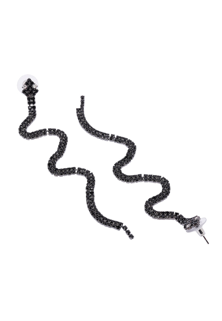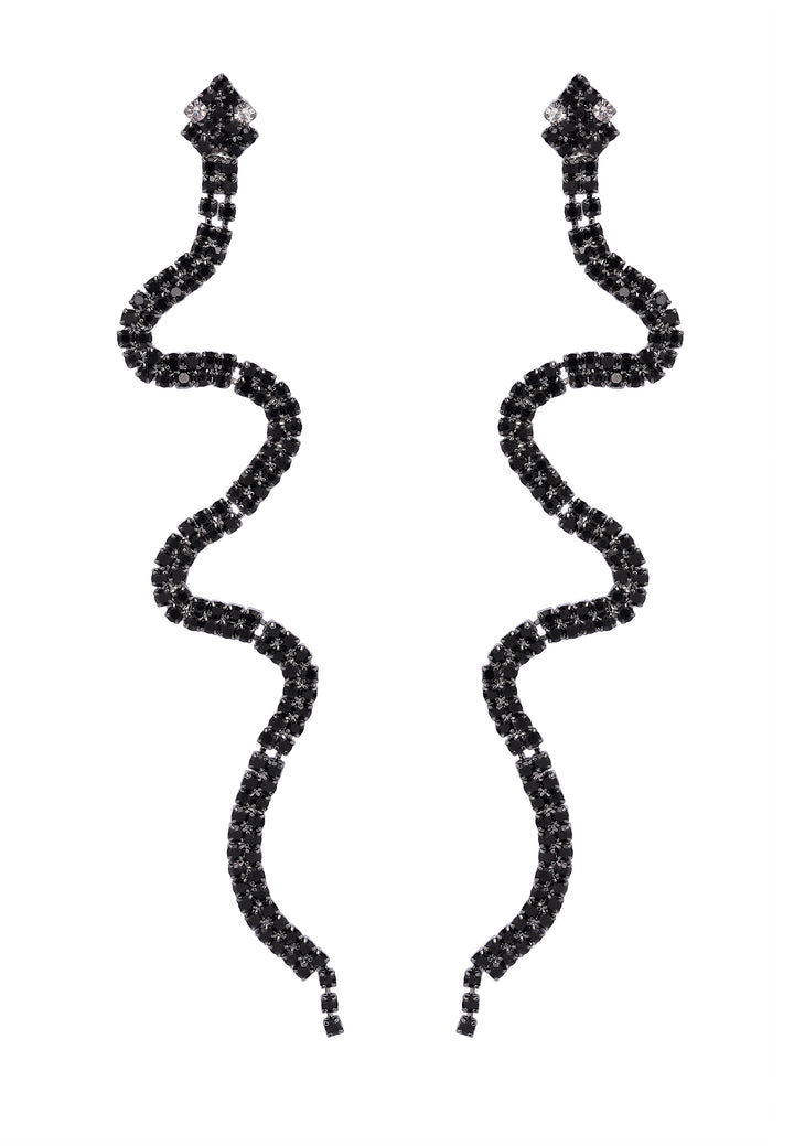 Get ready to unleash your inner Diva! These long, dramatic earrings are crafted from a mesmerizing cascade of jet-black embellishments, forming a sinuous shape that mimics the graceful movements of a serpent. They're edgy, they're bold, and they're guaranteed to make a statement. These earrings are perfect for adding a touch of darkness and intrigue to your look, whether you're dressing up for a night out or simply want to add a touch of edge to your everyday style.