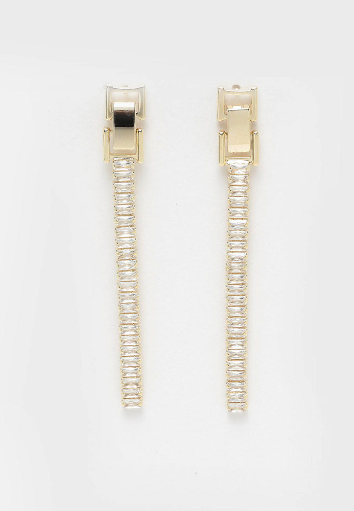 These earrings typically feature a gold-plated metal base with one or more decorative elements that hang and move freely. Depending on personal taste and the desired look, they can range from minimalist and sleek to intricate and ornate.