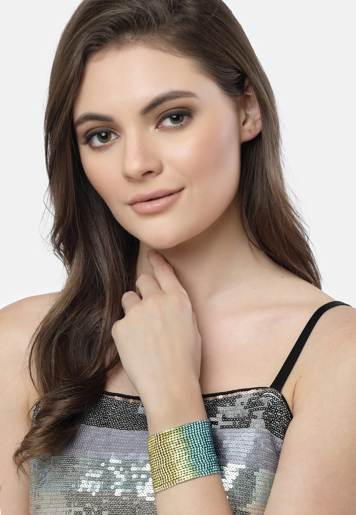 Is cúlpháirtí glamorous agus chic é an Bracelet Diva só a léiríonn stíl agus sofaisticiúlacht. Tá an bracelet seo deartha chun ráiteas a dhéanamh, ina bhfuil meascán d'ábhair luxurious agus ceardaíocht chasta. Déan an bráisléad a ionchorprú isteach i do chuid éadaí dressy le haghaidh ceiliúradh, páirtithe, nó imeachtaí sóisialta. Is féidir leis do chuma iomlán a ardú agus fónamh mar phointe fócasach do ensemble.