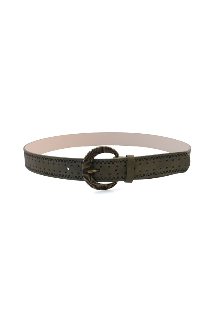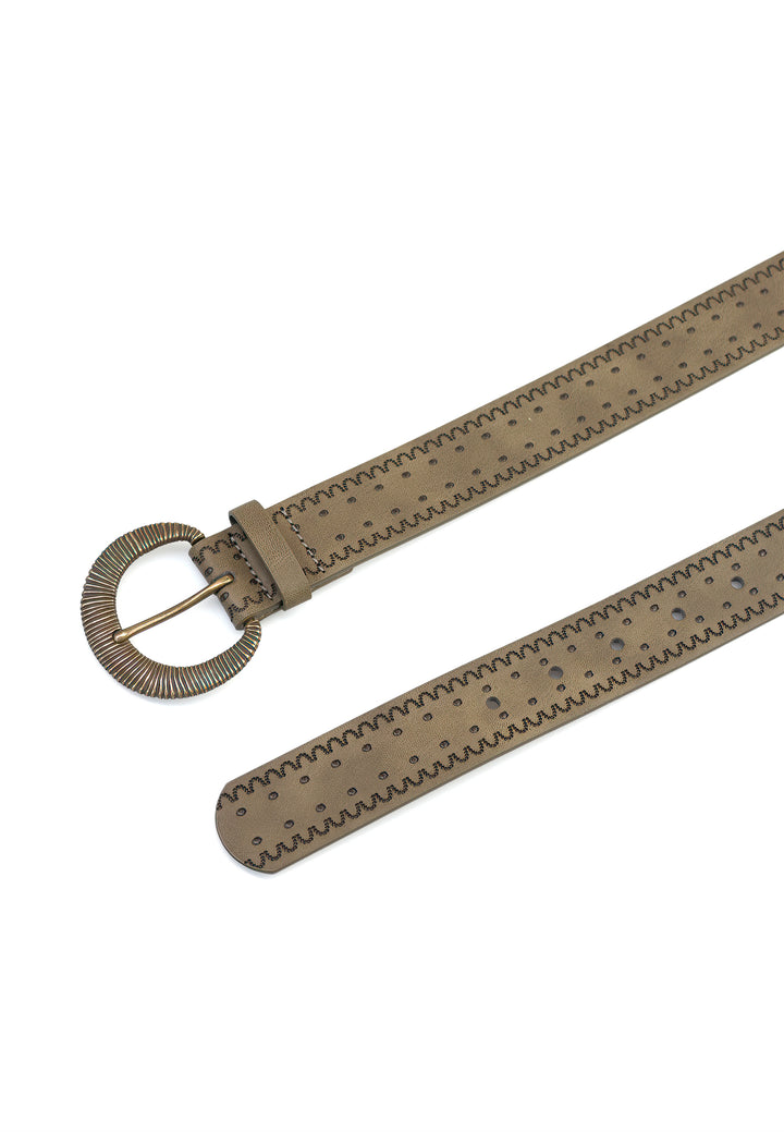 Is gabhálais iontach, a mheallann súile é an Crios Dearthóra Radiant i ndath glas a chomhcheanglaíonn dearadh dána le ceardaíocht shóisialta. Le sonraí casta agus buicéad ráite, tá an crios seo déanta chun seasamh amach. Cuireann a chríochnú lonrach, bíodh sé leathar lonrach nó teagmháil miotail, biseach beoga le haon éadaí, ag déanamh de dhíth ar dhuine ar bith atá ag iarraidh sofaisticiúlacht agus teagmháil glamúir a chur lena cuma. Déanann a dhearadh a mheallann súile agus a chríochnú galánta píosa ilúsáidte é a ardóidh go héasca éadaí neamhfhoirmiúla agus foirmiúla araon, ag tairgiú meascán de ghlamúir agus sofaisticiúlacht.