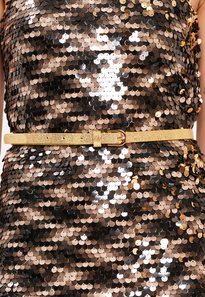La cintura Sleek Snake Print color oro è un accessorio elegante e senza sforzo che porta un tocco di sofisticazione esotica a qualsiasi outfit. Caratterizzata da una finitura liscia e lucida con un sottile ma audace motivo a serpente, questa cintura è sia audace che chic. Il suo design elegante la rende perfetta per aggiungere texture e interesse visivo senza essere opprimente, offrendo un tocco lussuoso e contemporaneo al tuo guardaroba. La cintura Sleek Snake Print è versatile, audace e ideale per chiunque desideri aggiungere un po' di texture e un'affermazione sia a outfit casual che più sofisticati.