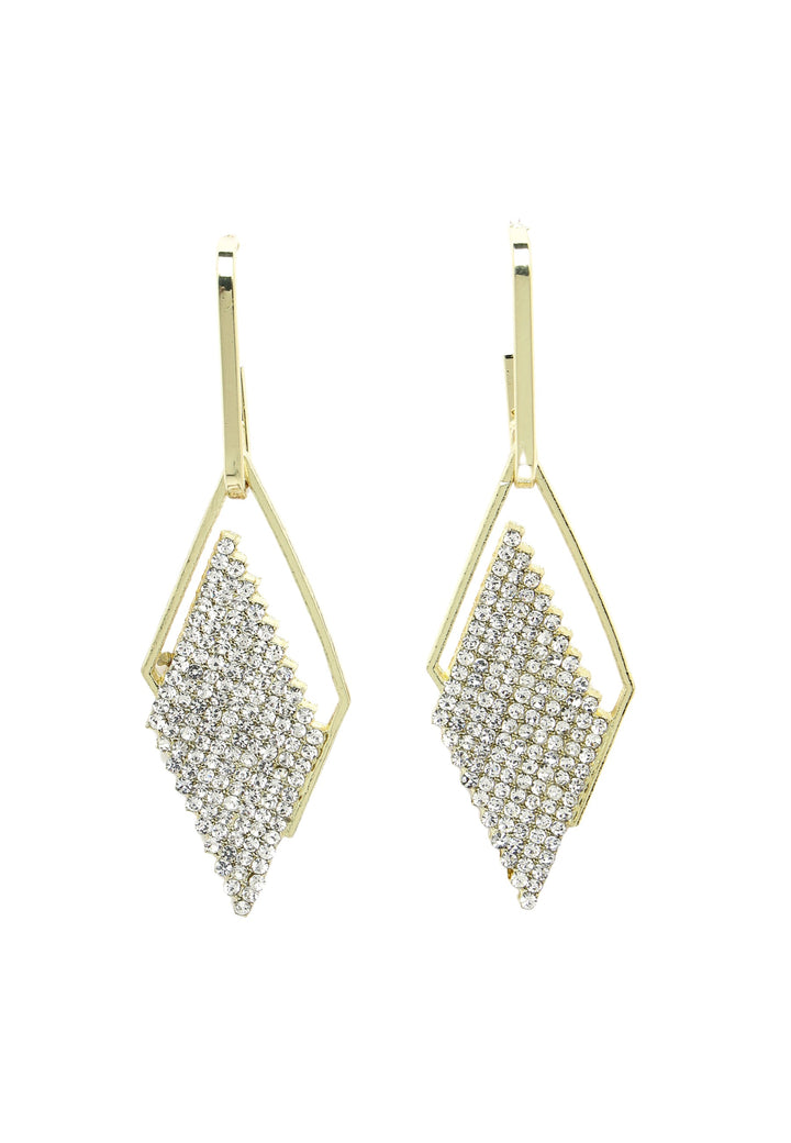 Nämä rombin muotoiset hohtavat riippukorvakorut ovat tyylikäs asuste, joka lisää ripauksen hienostuneisuutta mihin tahansa asuun. Korvakorut on suunniteltu kiinnittäen huomiota yksityiskohtiin, ja niissä on geometrinen rombinen muoto, joka luo rohkean ja modernin ilmeen. Korvakorut on valmistettu korkealaatuisista kristalleista. Suunnittelu on yksinkertainen mutta tyylikäs, joten nämä korvakorut ovat monipuolinen lisävaruste, jota voidaan käyttää useiden asujen kanssa. Tämä olisi täydellinen lisä työasuun, kuten puseroon ja lyijykynähameeseen, mutta sitä voidaan käyttää myös lisäämään glamouria cocktail-mekkoon tai -pukuun.