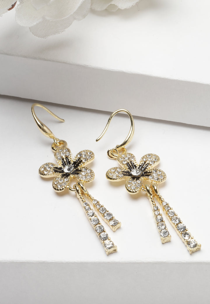 Kullanväriset Crystal Floral Chimes -korvakorut ovat tyylikäs ja viehättävä asuste, joka loistaa minkä tahansa kokonaisuuden. Näiden korkealaatuisista materiaaleista valmistettujen korvakorujen herkät kukka-aiheet ja putoavat kellomäiset rakenteet on koristeltu loistavilla kiteillä. Kullanväriset Crystal Floral Chimes -korvakorut ovat monipuolisia ja ne voidaan yhdistää eri asuihin. Ne sopivat täydellisesti lisäämään ripauksen glamouria muodolliseen liiketoimintaan tai täydentämään ainutlaatuista juhlamekkoa.