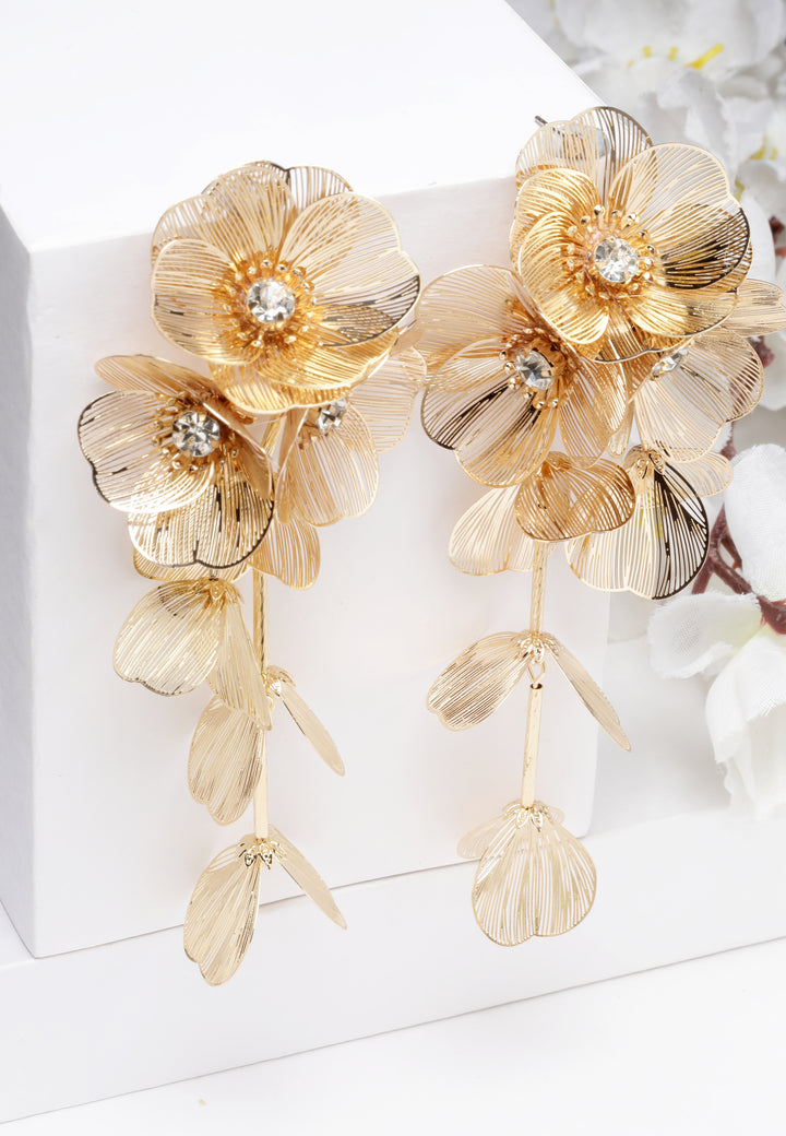 Crystal Bloom Tupsukorvakorut ovat upea ja tyylikäs asuste, joka lisää ripauksen hienostuneisuutta mihin tahansa asuun. Nämä korvakorut on suunniteltu korkealaatuisista materiaaleista, ja niissä on kaunis kukka-muotoinen nappi, jota koristavat kimaltelevat kristallit ja roikkuvat terälehdet. Crystal Bloom Tassel Earrings in Gold on monipuolinen asuste, joka voidaan yhdistää erilaisiin asuihin.
