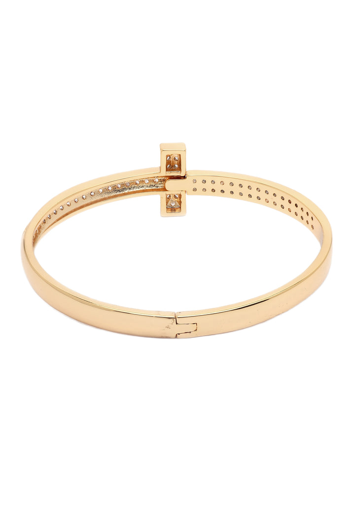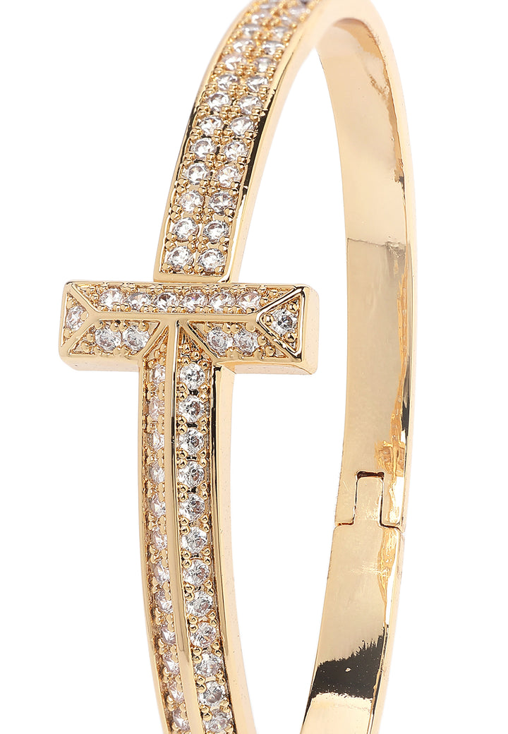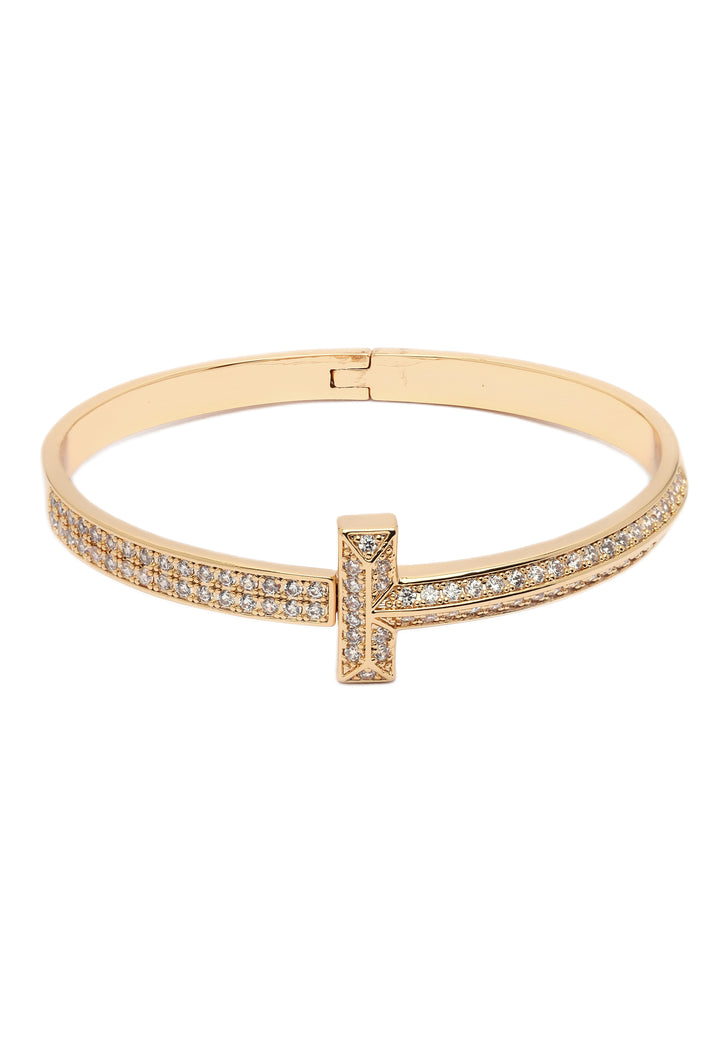 Rohkea mutta hienostunut, tämä säihkeä rannekoru on nykyaikaisen eleganssin huipentuma. Sen näyttävä T-tangon keskipiste on hienosti koristeltu kimaltavilla timanteilla, jotka kimaltelevat joka suunnasta. Suora, geometrinen muotoilu yhdistää modernin hienostuneisuuden ajattomaan viehätysvoimaan, mikä tekee siitä täydellisen asusteena, joka nostaa tyyliäsi ja valaisee minkä tahansa tilaisuuden. Eloisa lisäys korukokoelmaasi!