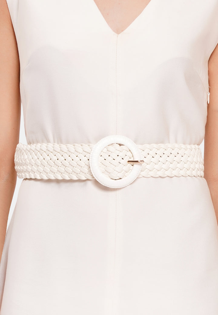Valkoinen punottu pyöreä solkivyö on tyylikäs ja teksturoitu asuste, joka lisää ripauksen maalaismaista viehätystä ja modernia hienostuneisuutta mihin tahansa asuun. Monimutkainen punottu muotoilu antaa vyölle ainutlaatuisen, kudotun ilmeen, kun taas pyöreä solki tuo ajattomuutta ja tasapainoa. Tämä vyö on sekä silmiinpistävä että monipuolinen, täydellinen lisä tekemään asustasi näyttävän. Vyö lisää rentoa boheemia tunnelmaa asuun, täydellinen rantapäivään tai rentoon ystävien kanssa vietettävään hetkeen.