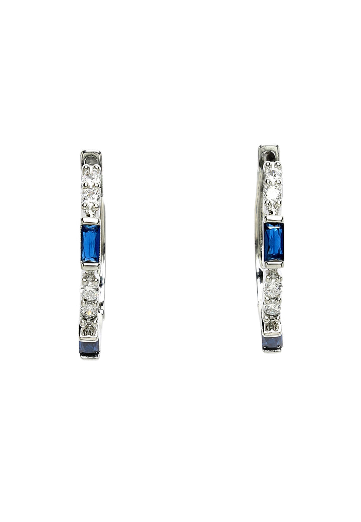 Nämä korvakorut on muotoiltu antamaan ilmettä geometrisella muotoilullaan ja silmiinpistävällä väripaletilla. Jokaisessa vanteessa on tyylikkäät linjat ja kulmat, jotka luovat nykyaikaisen siluetin, joka huokuu tyylikästä tyyliä. Koristeltu vuorotellen sinisillä ja hopeisilla kivillä. Nämä korvakorut sopivat täydellisesti lisäämään ripauksen glamouria sekä päivä- että ilta-asuihin. Nämä korvakorut ovat riittävän monipuolisia täydentämään erilaisia asuja.