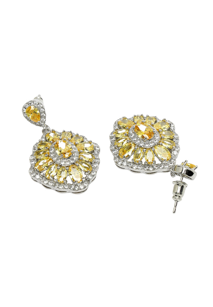 Keltaiset Cubic Zirconia Statement -korvakorut ovat säteilevä ja katseenvangitsija, joka huokuu lämpöä ja eloisuutta. Näissä korvakoruissa on häikäiseviä kuutiometrisiä zirkoniakiviä kirkkaan keltaisen sävyssä, ja ne on järjestetty monimutkaiseen ja kiehtovaan muotoiluun. Rohkean muotoilunsa ja säteilevän värinsä ansiosta keltaiset Cubic Zirconia Statement -korvakorut ovat täydellinen lisävaruste, joka lisää ripauksen glamouria ja persoonallisuutta mihin tahansa kokonaisuuteen. Olitpa osallistumassa erityiseen tapahtumaan tai haluat vain korostaa jokapäiväistä tyyliäsi, nämä korvakorut häikäisevät ja ilahduttavat.