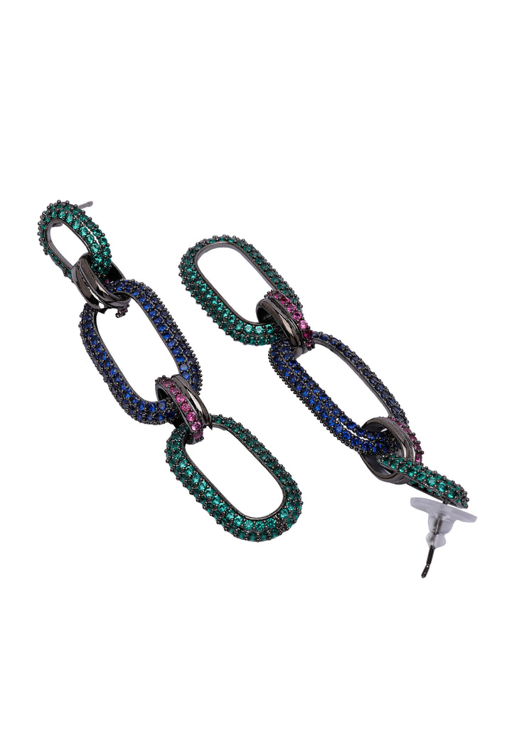 Diva-kokoelman Diva Dangle Drop Oval Hoops -korvakorut ilmentävät eleganssia ja nykyaikaista tyyliä. Nämä hienostuneet korvakorut on koristeltu monivärisillä kuutiollisilla zirkonioilla, jotka on valittu niiden elävän värin ja upean kimmellyksen vuoksi. Suunniteltu ainutlaatuisella yhdistelmällä roikkuvia ja renkaallisia elementtejä, nämä korvakorut tarjoavat modernin käänteen klassiseen tyyliin. Olitpa pukeutumassa erityiseen tilaisuuteen tai lisäämässä hieman kimallusta päivittäiseen ilmeeseesi, Diva Dangle Drop Oval Hoops -korvakorut ovat täydellinen valinta.