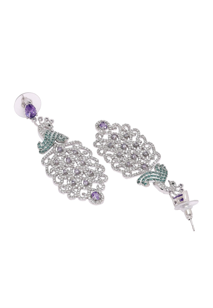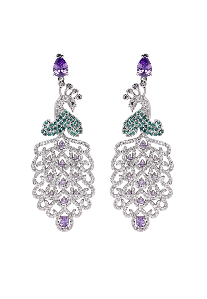 Diva-kokoelman kauniit riipuskorvakorut, joissa on vihreitä ja sinisiä sävyjä sekä hopeinen kuutiollinen zirkonia sulka, ovat upea asuste. Nämä korvakorut sisältävät todennäköisesti suunnittelun, joka on saanut inspiraationsa riikinkukon sulista, jotka tunnetaan eloisista väreistään ja monimutkaisista kuvioistaan. Sulkaosa on hopeaa, mikä lisää ripauksen eleganssia. Käytä näitä korvakoruja yksinkertaisen paidan tai mekon kanssa lisätäksesi väriä ja eleganssia päivittäiseen pukeutumiseesi. Riikinkukko-inspiroitu muotoilu tekee niistä näyttävän asusteen sekä päivällä että yöllä. Nämä korvakorut ovat varmasti erottuva kappale kaikessa korukokoelmassa.