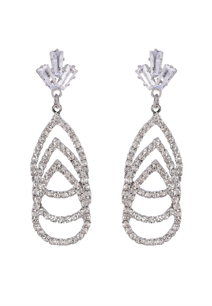 Monimutkainen rakenne, jossa on lukuisia pisaramaisia muotoja, koristeltuna loistavalla kimaltelevien jalokivien esityksellä, luo ulkonäön, joka on sekä hienostunut että erottuva. Nämä korvakorut ovat rohkea asuste, joka säteilee eleganssia ja viehätystä, täydellinen lisäämään ripauksen ylellisyyttä mihin tahansa asuun.