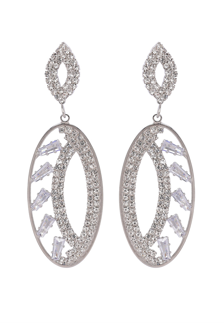 Nämä korvakorut ovat kiehtova yhdistelmä modernia ja klassista tyyliä. Uniikki soikea muotoilu, joka on koristeltu häikäisevällä kimaltelevien kivien valikoimalla, luo ilmeen, joka on sekä elegantti että silmiinpistävä. Ne ovat näyttävä koru, joka huokuu hienostuneisuutta ja viehätystä, täydellinen lisäämään ripauksen glamouria mihin tahansa asuun.