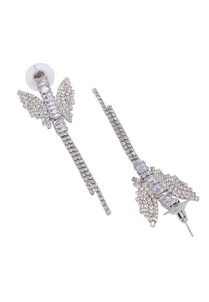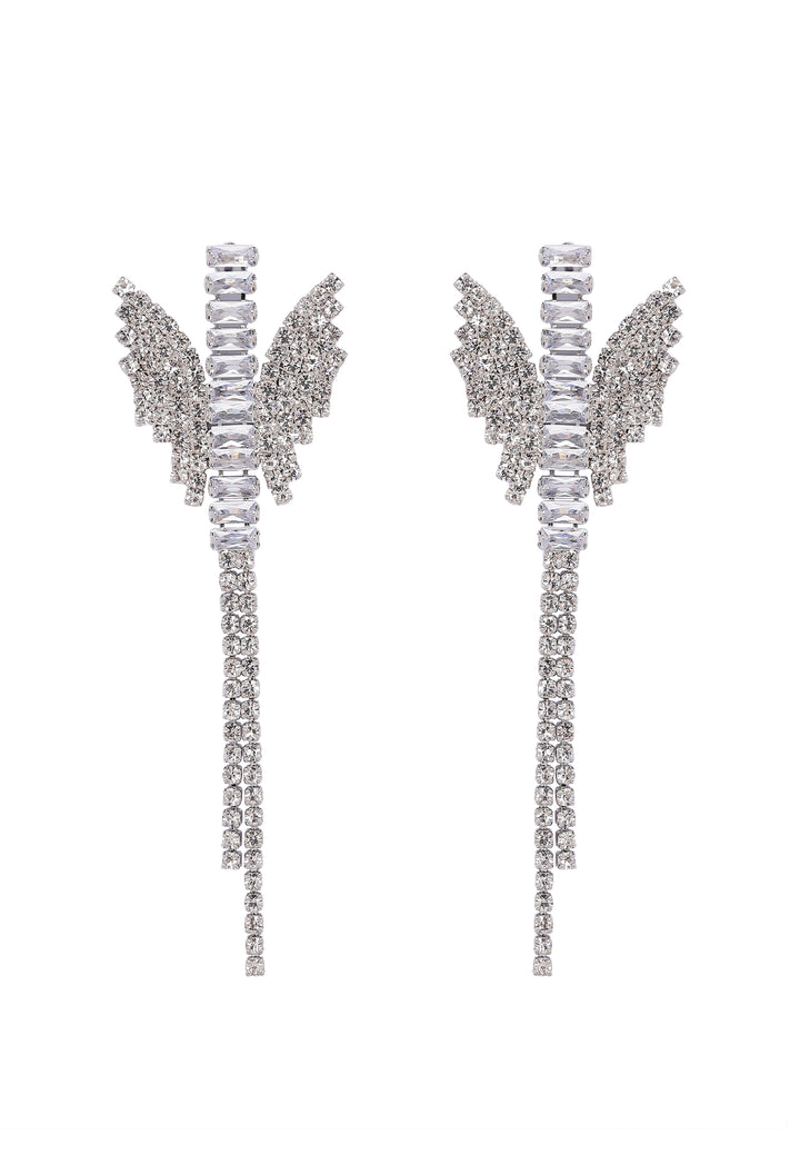 Ainutlaatuinen perhosdesign, joka on koristeltu kimaltelevien kivien vesiputouksella, luo vangitsevan ja elegantin ilmeen. Ne ovat hieman dramaattisia, mutta täydellisiä lisäämään ripauksen glamouria ja persoonallisuutta mihin tahansa asuun.