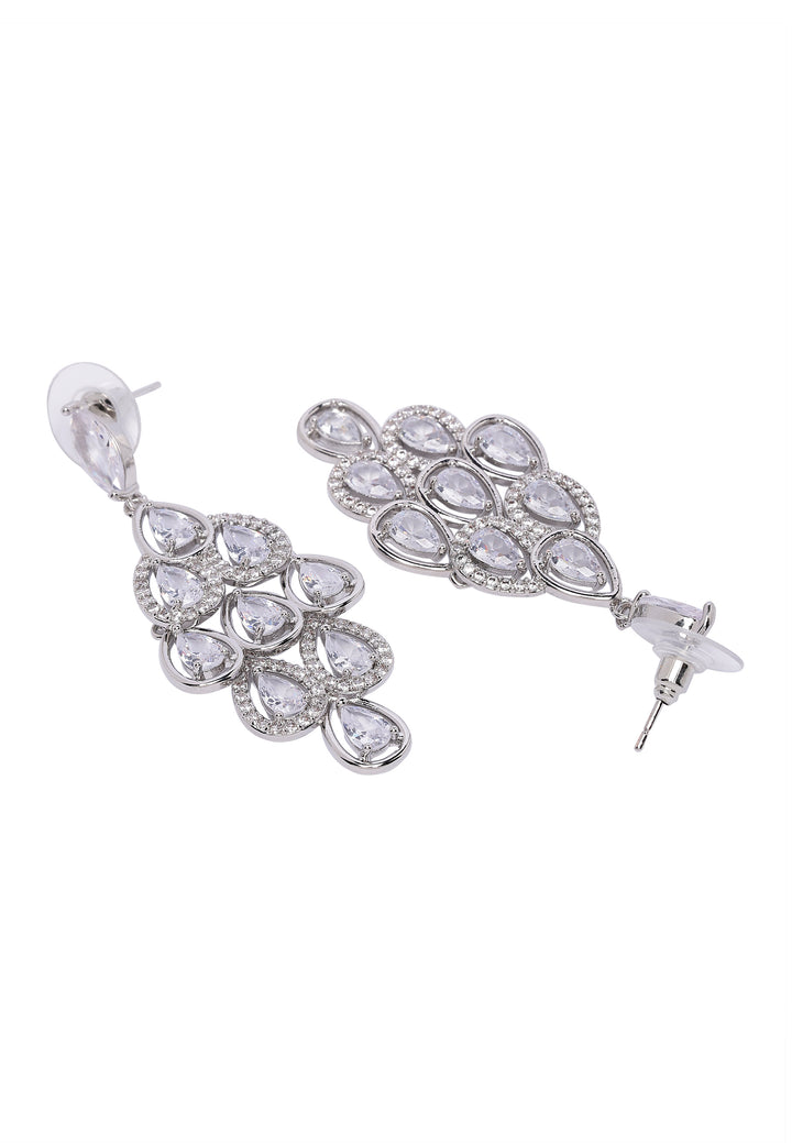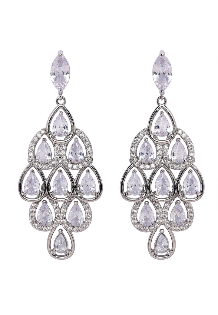 Nämä elegantit roikkuvat korvakorut esittelevät vesiputousmaista järjestelyä kimaltavista kivistä, luoden lumoavan vesiputousvaikutelman. Ne ovat täydellinen yhdistelmä hienostuneisuutta ja kimallusta, lisäten pehmeää glamouria.