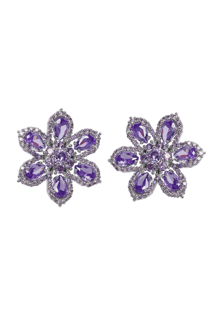 Violettia lumoa! Monimutkainen kukkakuosi, jota koristaa upea näyttö kimaltelevista kivistä, tuo mukaansa lumoavan ja sulokkaan viehätyksen, joka varmasti kiinnittää huomion. Nämä korvakorut ovat kuin pienoistähtiä korvillesi, tuoden mihin tahansa asuun ripauksen taivaallista viehätystä.