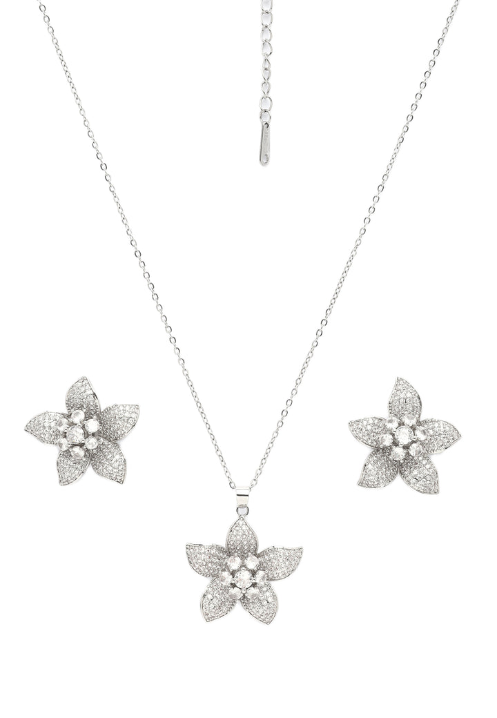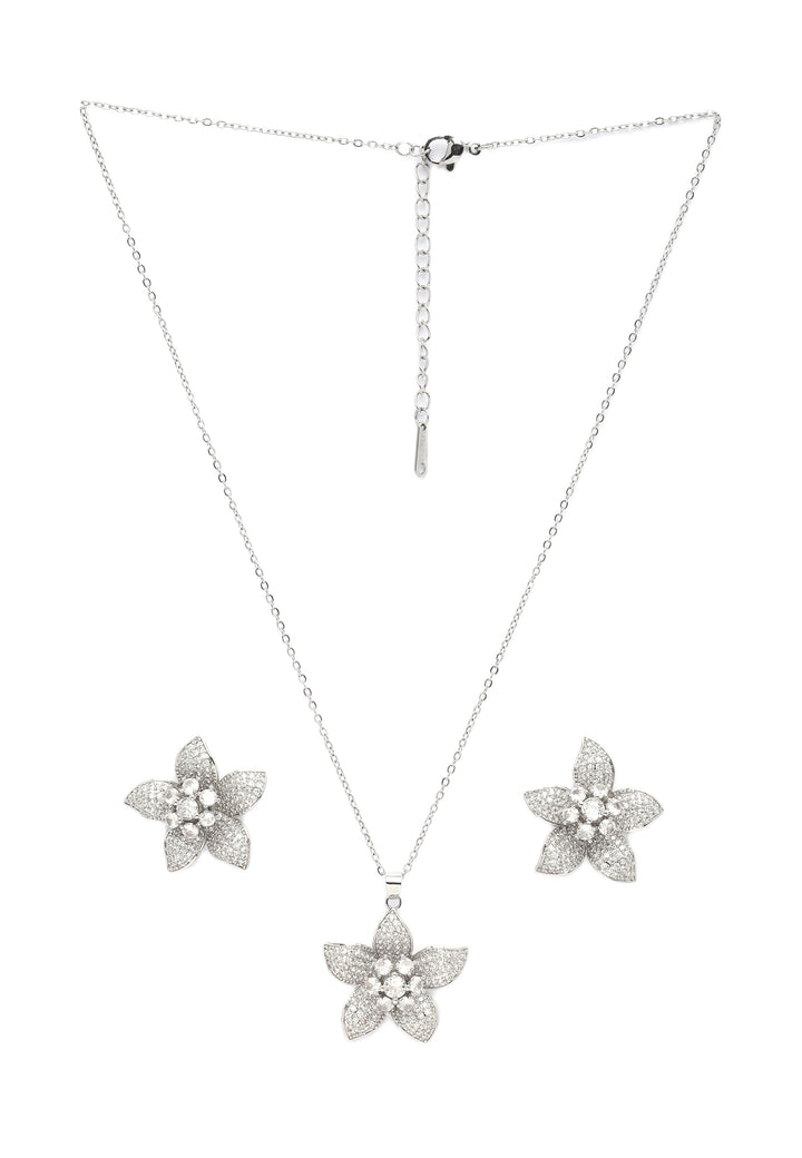 Kaulaketjussa on säihkeä kukkaketju, joka on koristeltu kimaltelevilla kivillä, ja se on täydellisesti täydentänyt yhteensopivilla korviksilla, jotka heijastavat sen eleganssia. Suunniteltu vangitsemaan valoa jokaisessa liikkeessä, tämä setti on hienostuneisuuden ja armon symboli. Ihanteellinen erityisiin tilaisuuksiin tai tuomaan ripauksen kimallusta jokapäiväiseen asuusi, se on ajaton lisä kokoelmaasi, joka ei koskaan jää huomaamatta.