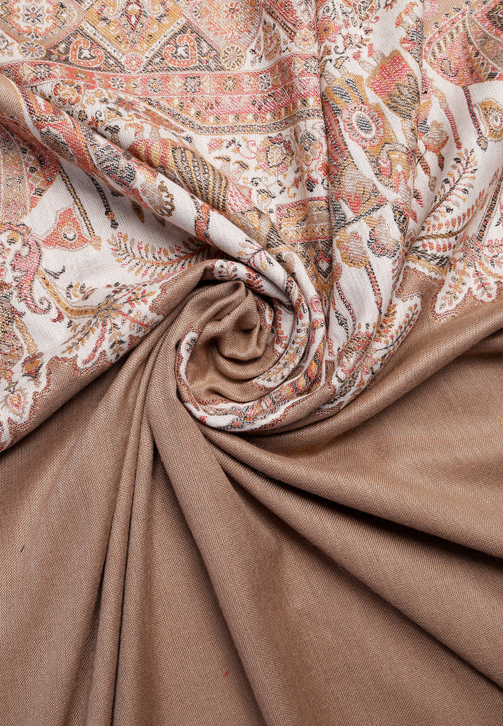 Kauniit Jamawar-mallit pehmeällä keinotekoisella pashmina-kankaalla ja perinteisellä taiteella. Suosittu Mughal-aikakaudesta lähtien. Tämä perinteinen kashmirilainen huivi on monimutkainen malli ja laatu.