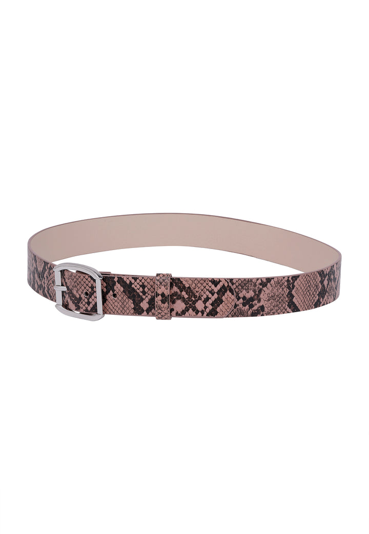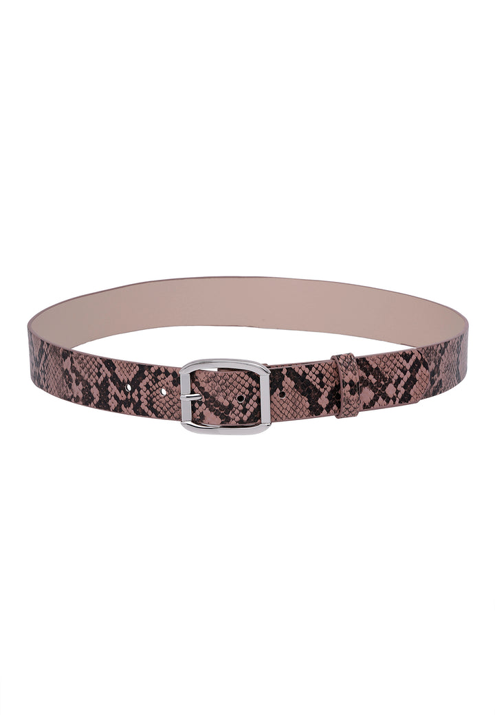 Det här exotiska bältet med ormskinnsprint är ett djärvt statement-tillbehör som tillför en touch av vild elegans till vilken outfit som helst. Den livfulla grå nyansen, tillsammans med det intrikata, texturerade ormskinnsmönstret, utstrålar en edgy och lyxig känsla. Den släta finishen ger det ett modernt men tidlöst utseende, vilket gör det till ett mångsidigt tillskott i din garderob. För en mer sofistikerad look, kombinera bältet med en slank svart klänning eller en sidenblus instoppad i en högmidjad pennkjol.
