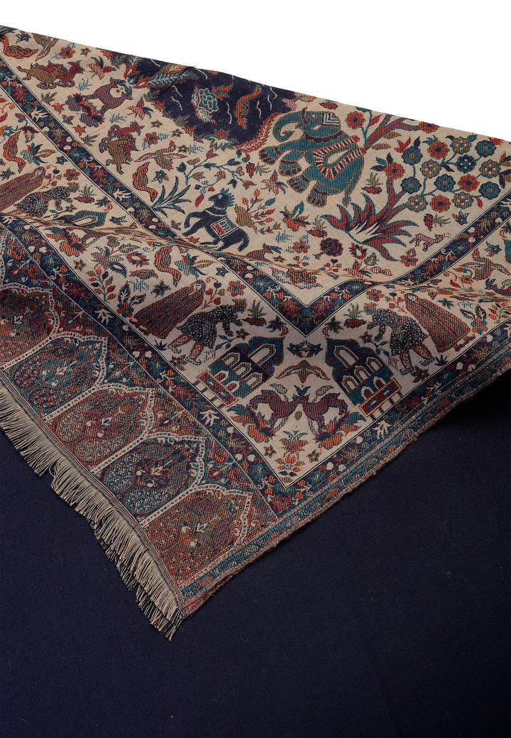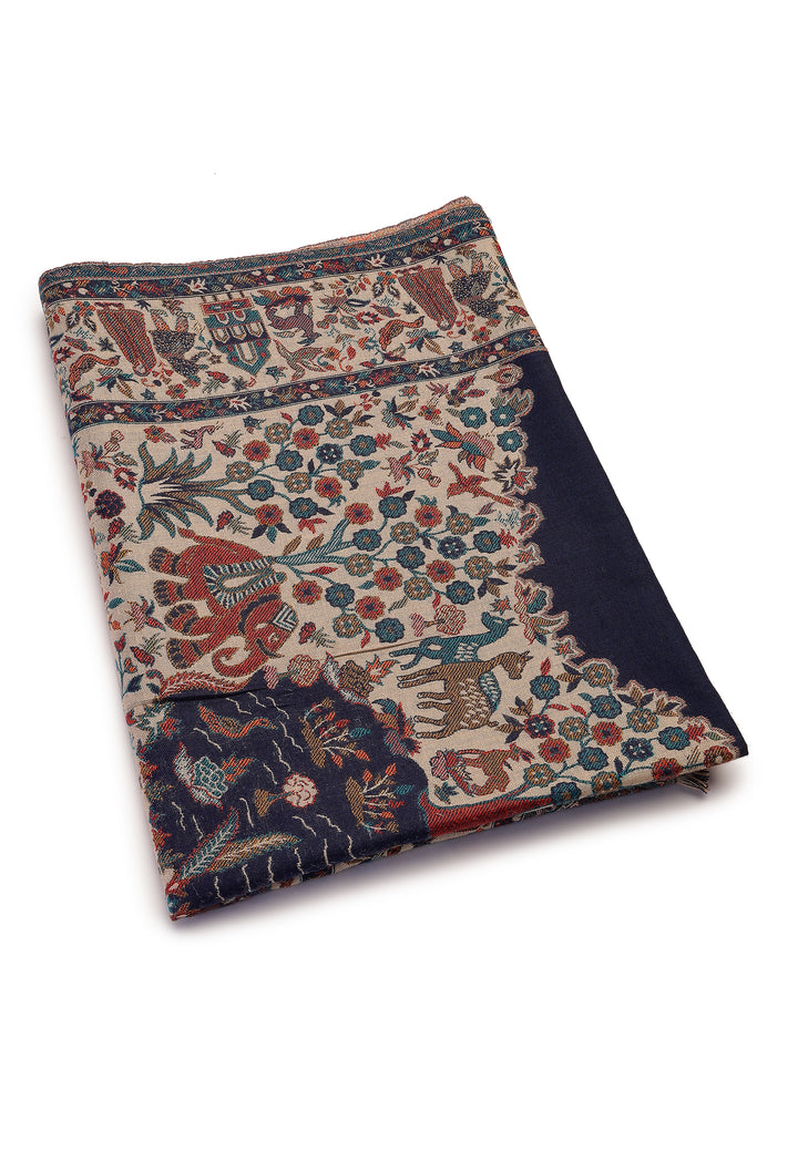 Vackra Jamawar-mönster, på ett mjukt faux pashmina-tyg och traditionell konst. Populära sedan Mughal-eran. Denna traditionella kashmiriska stil sjal har intrikata mönster och kvalitet.